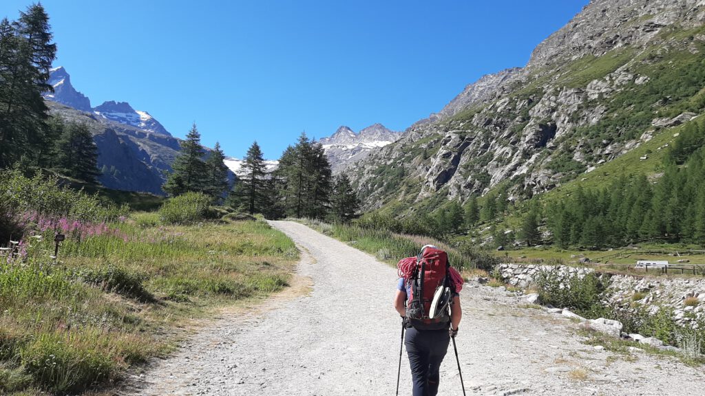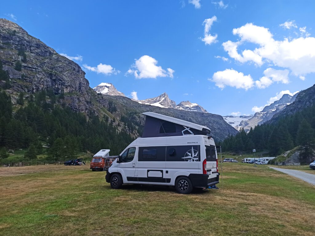 Im überraschend einsamen Valsavarenche Tal am Fuß des Gran Paradiso fanden wir für die erste Nacht einen schönen, zu Corona Zeiten kostenlosen Wohnmobilstellplatz im gleichnamigen Ort, sogar mit kostenloser Ver- und Entsorgung. Wir verbrachten dort einen ruhigen Abend und eine erholsame Nacht, bevor es am nächsten Tag wieder zwei Tage zu Fuß und in luftige Höhen gehen sollte.