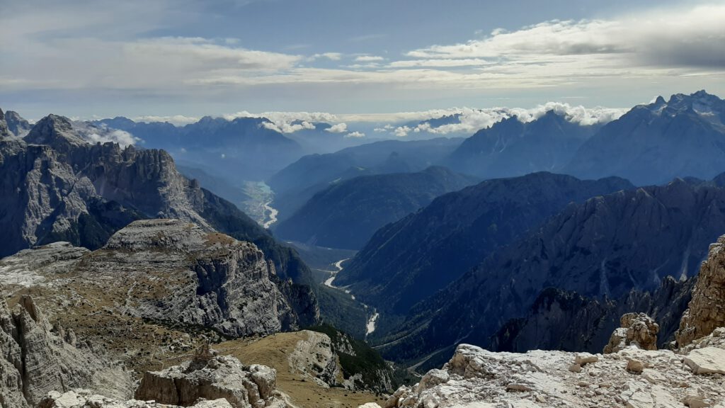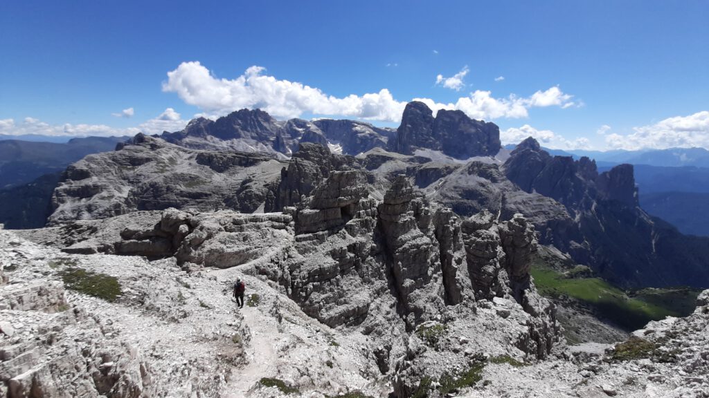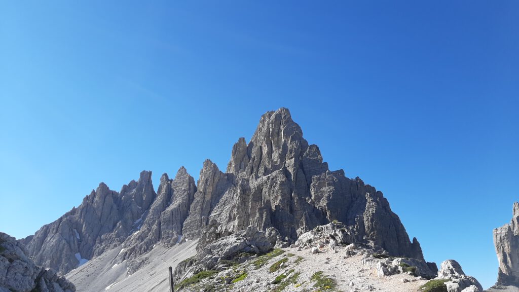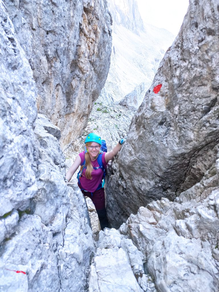 Um unsere abgebrochene Bergtour auf die Westliche Zinne wett zu machen, sind wir am nächsten Tag als Genusstour ein zweites Mal auf den Paternkofel mit Klettersteig gestiegen. Den haben wir bereits vor vier Jahren als meinen ersten Klettersteig bestiegen und so haben wir ihn dieses Jahr zum Spaß an der Freude wiederholt und einfach den Ausblick auf unsere liebsten Berge genossen. Als Abstieg haben wir den abwechlungsreichen Schartenweg (Sentiero delle Forcelle) gewählt, um den Menschenmassen etwas aus dem Weg zu gehen.