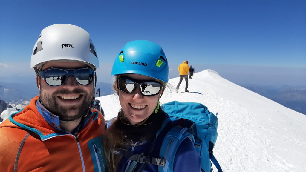 Lachend und mit Tränen der Freude und des Glücks in den Augen freuten wir uns so, dass wir auf dem höchsten Gipfel der Alpen stehen und bei Kaiserwetter bis zum Matterhorn blicken konnten! Ein wirklich unglaubliches Erlebnis und unser Highlight im Corona Jahr 2020!